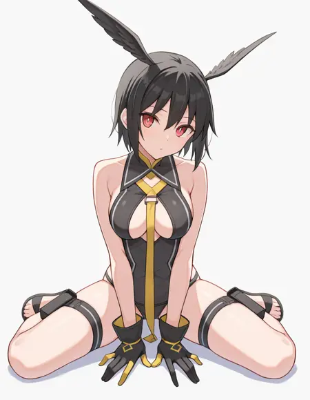 Ortlinde, 红色眼睛,黑色头发,短发,ort_head_wings