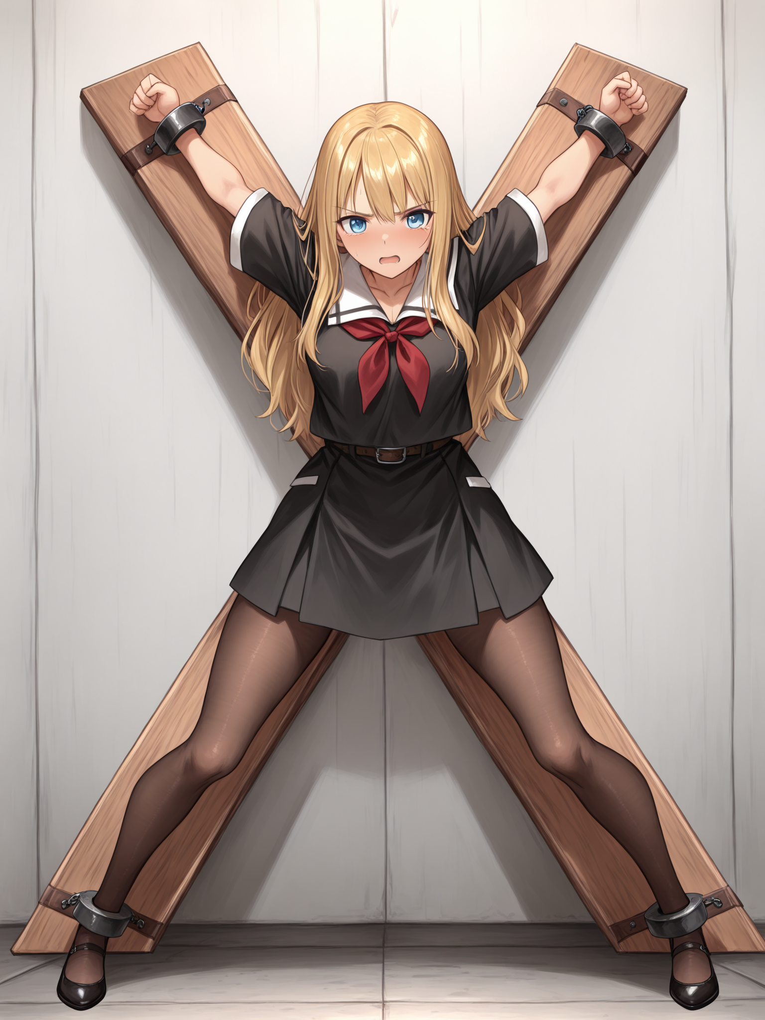 Recommended prompt: x-cross, legs apart, restrained