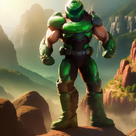 99 images in its dataset. Last image was somehow corrupted, so had to remove it from dataset. "Green armor" triggers the original style, "armor" is the recent style.