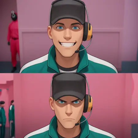 1boy, scouttf2, hat, headset, headphones, solo, blue eyes, black hair, bandages