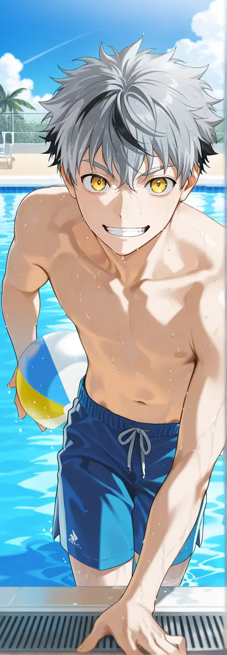 트리거 단어: 코우타로 보쿠토, 다색 머리, 단발, 검은 머리, 회색 머리, 이색 머리, 노란 눈