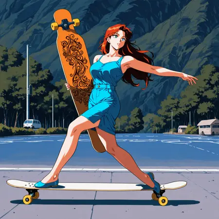 로라를 만들어볼 심산으로 특별한 롱보드인 Loaded Bhangra를 선택했다. 이 보드는 춤과 커빙용으로 제작된 것이다. 단순히 '롱보드' 태그만으로는 롱보드가 제대로 나타나지 않았고, 적어도 illustrious에서는 그랬다.