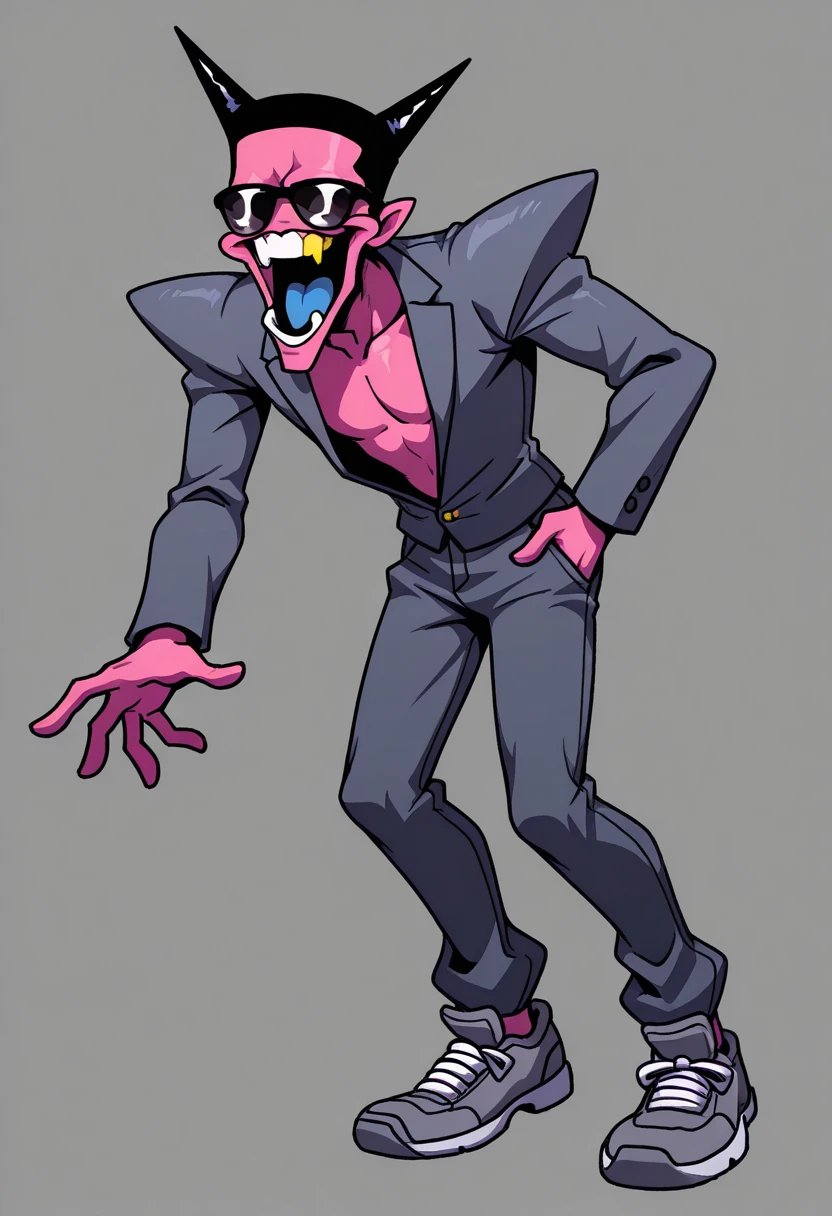 | 학습된 단어 | CarolosHenchmanFNF, 1boy, pink skinned demon, sleek black flat top, black hair, blue tongue, two small black horns, gray pants, gray shoes with white laces, gray vest unzipped down the middle with spiky shoulder pads, shiny black sunglasses, golden tooth복사됨! |