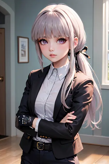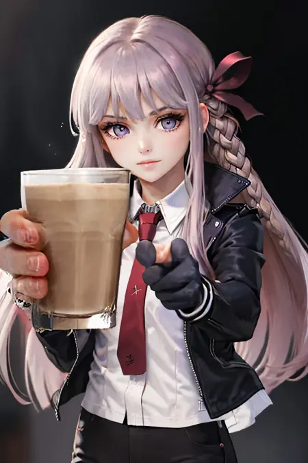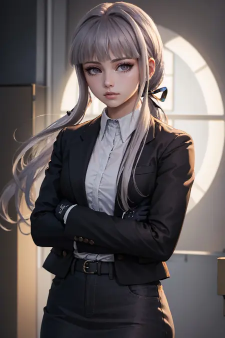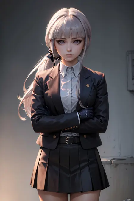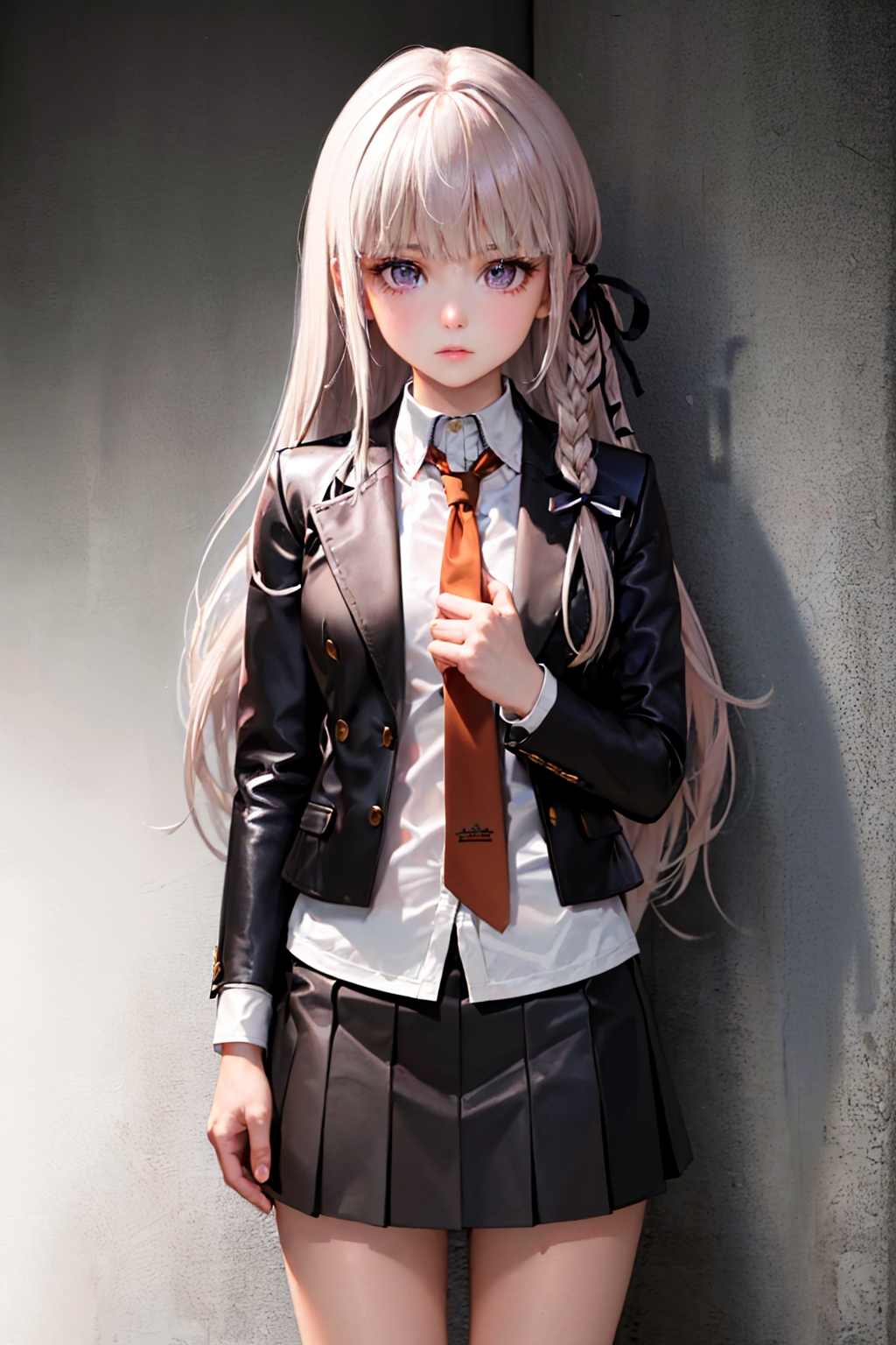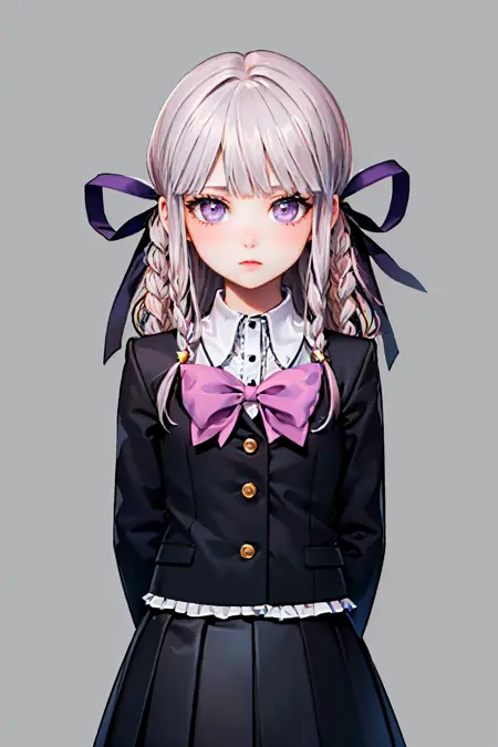 Danganronpa Kirigiri: kirigiridrk, braid, hair ribbon, school uniform, black jacket, bow, skirt