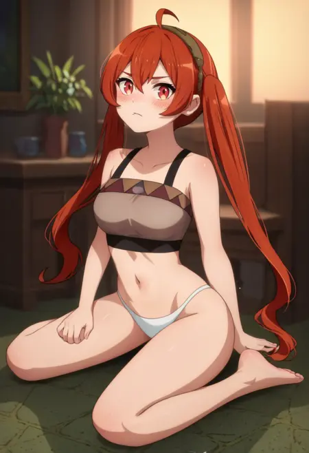 | Trained Words | lara, blue eyes, blue hair, parted bangs, single braid, white panties, white thighhighs, Copied! eris, red eyes, red hair, twintails, hair between eyes, black hairband, white shirt, brown shorts, brown thigh boots, brown gloves, // brown crop top, brown hairband, white panties,Copied! |