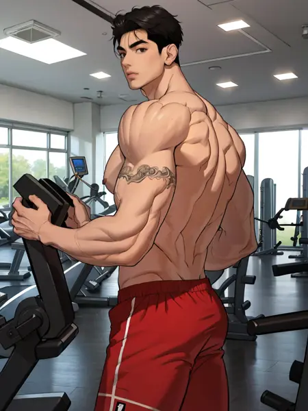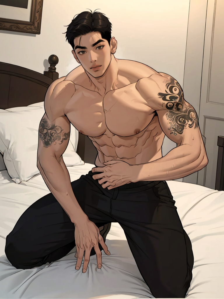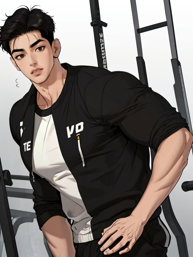 권장 태그: jaekyung, black hair, short hair, black eyes, muscular, muscular male, arm tattoo