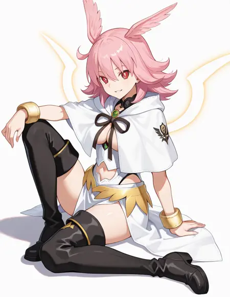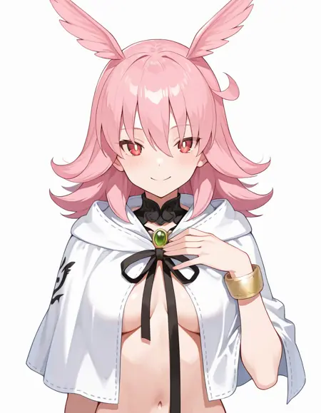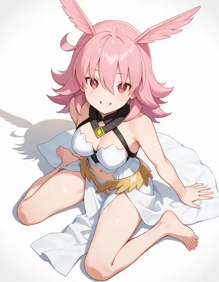 ヒルド、赤い目、ピンクの髪、ミディアムヘア、hld_head_wings