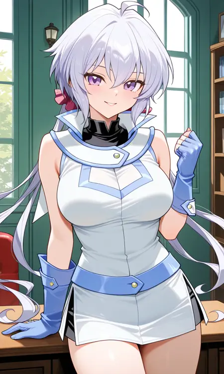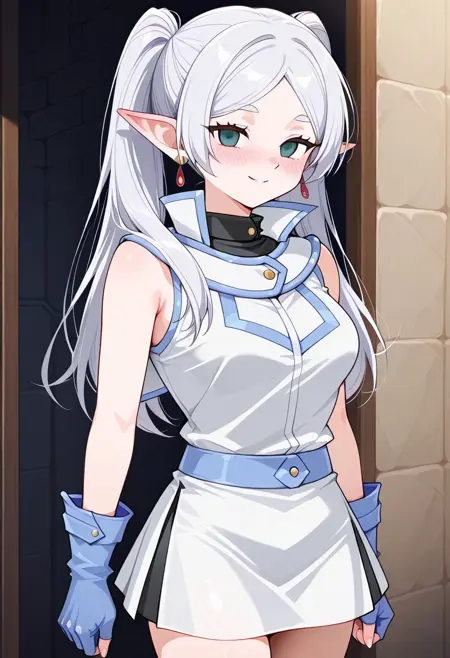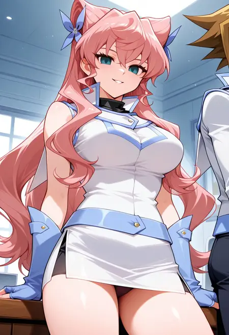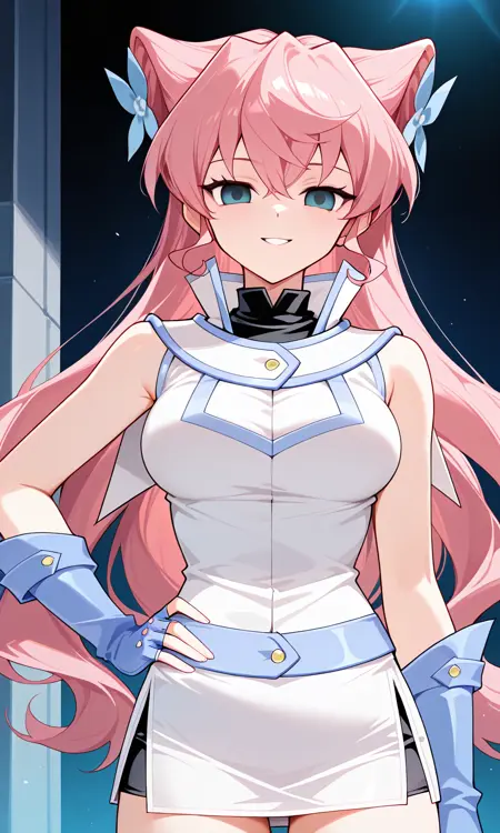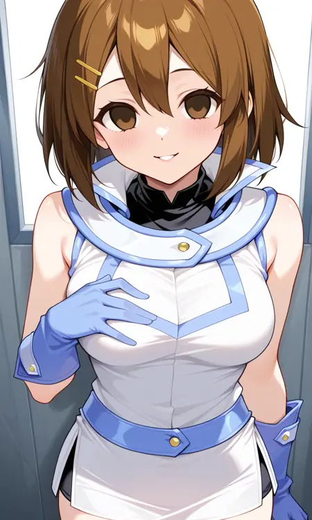 Society of light, sleeveless, white shirt, white skirt, blue gloves, duel academy uniform (yu-gi-oh! gx),