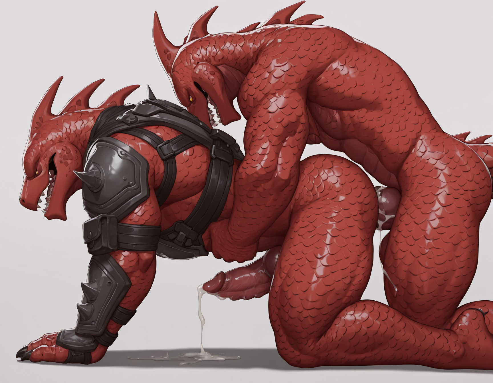 爪子,打结的锥形阴茎,盔甲,绿色鳞片