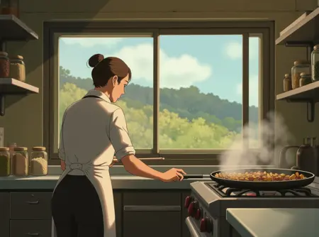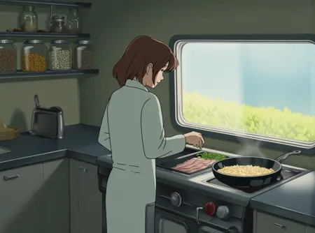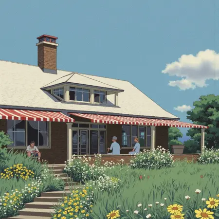 스튜디오 지브리 애니메이션 배경. 배경, 음식, 동물을 학습한 것으로, 캐릭터 이미지는 최소화됨.