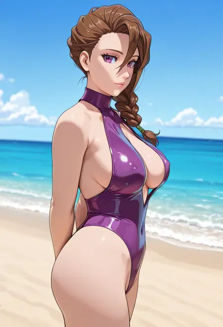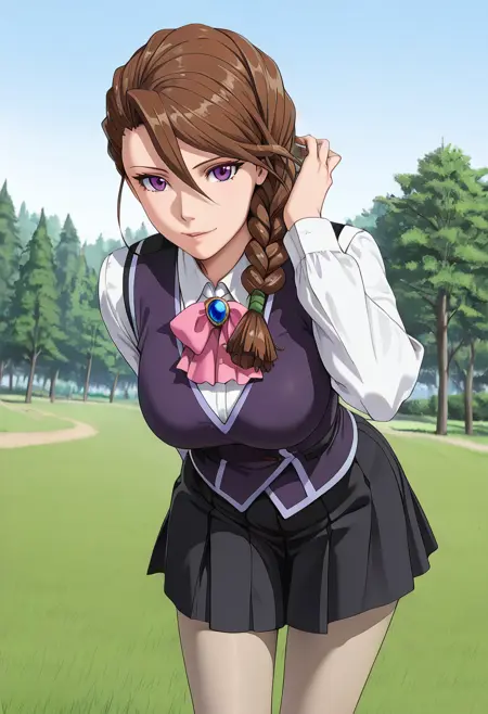 (long_hair, brown_hair, single_braid, braid, drill_hair, hair_over_shoulder, asymmetrical_hair, red_eyes, brown_eyes, purple_eyes, pink_eyes, hair_between_eyes:1.2),