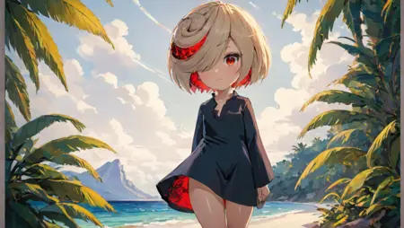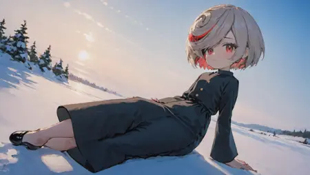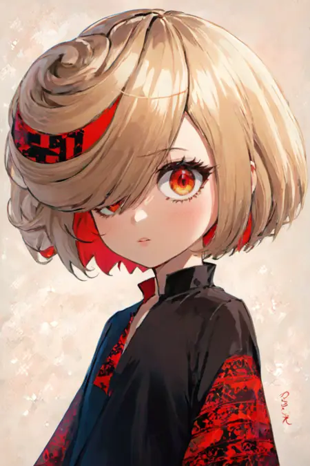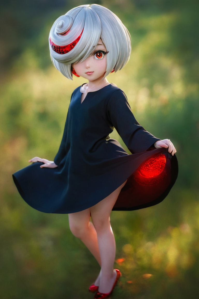 기본 프롬프트: Sage_(SonicFrontiers), 1girl, 빨간 눈, 로리, 어린이, 쓸어올린 앞머리, 흰 머리, 빨간 머리 띠, 한쪽 눈 가린, 검은 드레스, 긴 소매, 검은 침상복, 손목을 넘는 소매, 올라간 칼라
