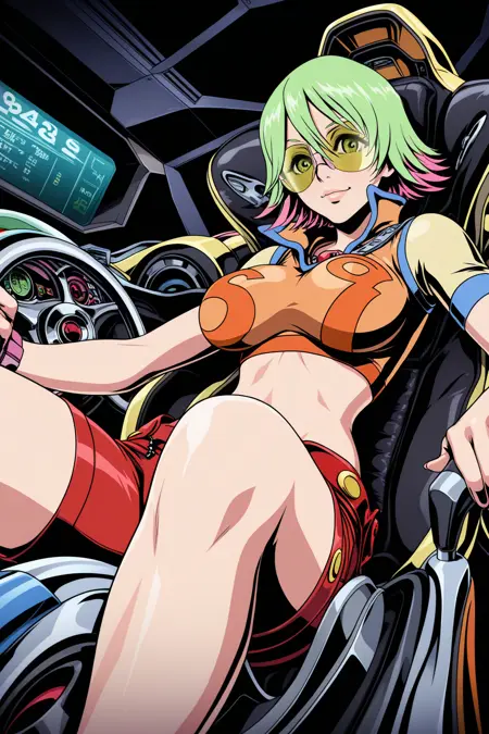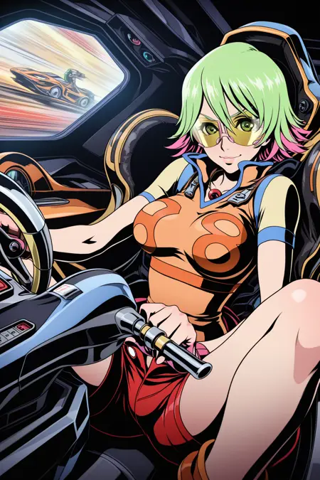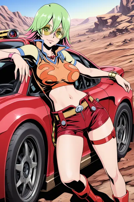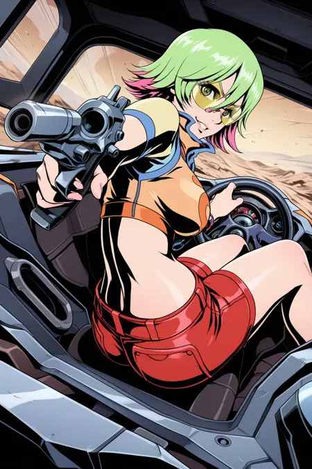 A LoRA of Sonoshe McLaren (ソノシー・マクラーレン), one of the main characters of the 2009 anime movie "REDLINE" (レッドライン) by Studio Madhouse.