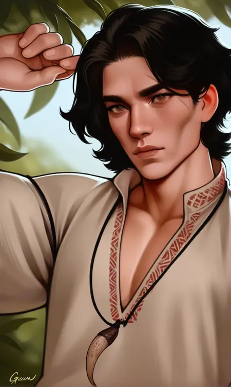 | 训练词汇 | male, boy, black hair, messy_hair, side_swept_bangs, medium_length_male_hair, sharp_jawline, high_cheekbones, almond_shaped_eyes, asian_male_face, brown eyes, beige_tunic, ethnic_embroidered_neckline, v_neck_collar, rolled_up_sleeves, novak已复制! |