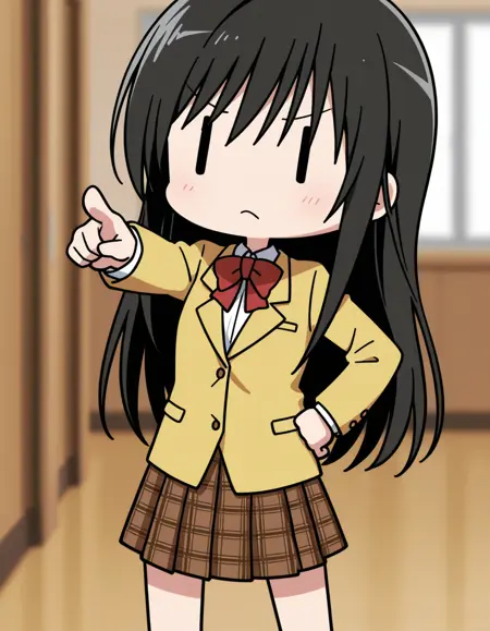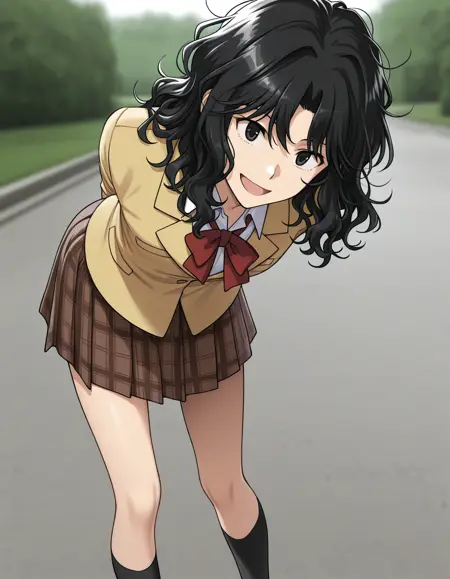 Ousai_Uniform, school uniform, yellow blazer, white shirt, collared shirt, red bow, plaid skirt, brown skirt