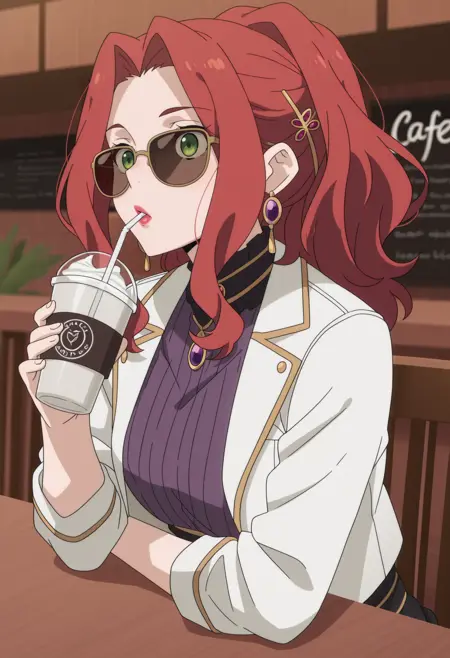The Lora is intended to have 1 activation keyword, which will have a general feeling of the character and that will stabilize the tags "ponytail, red hair, hair ornament, green eyes, lipstick, jewelry, earrings " to make them reproduce the likeness of Malty.
