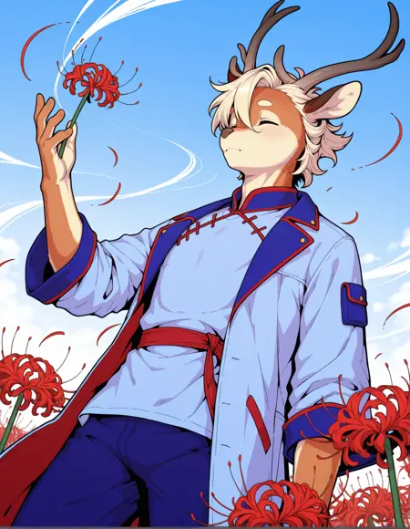 waifai, deer, solo, anthro, maleOutfits: