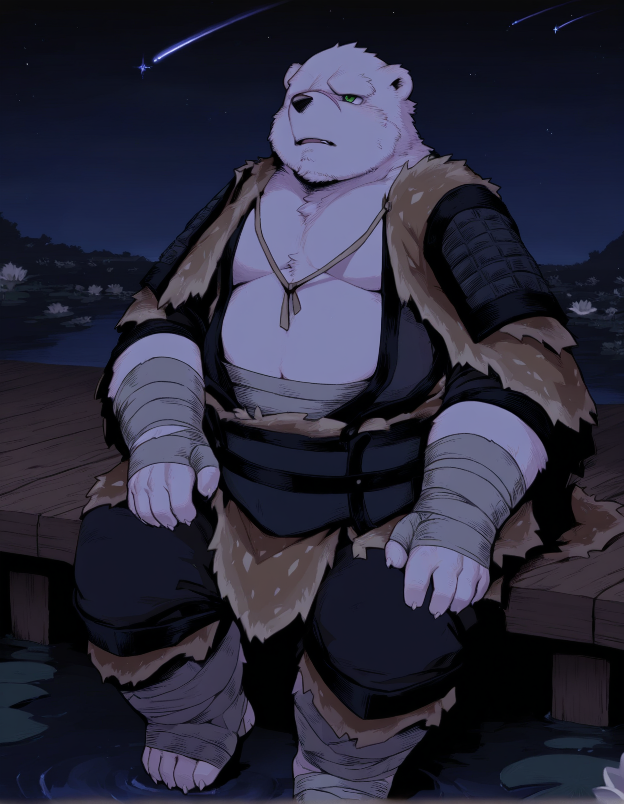 skylo, polar bear, anthro, solo, musclegut male, nose scarOutfits: