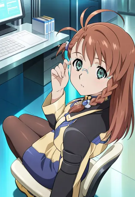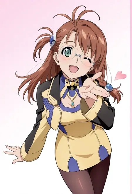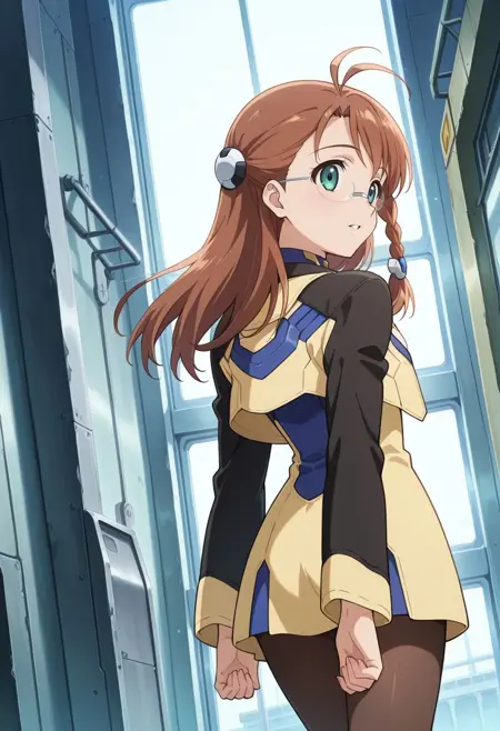 shion uzuki, brown hair, single braid, ahoge, long hair, glasses, round eyewear, parted bangs, green eyes,