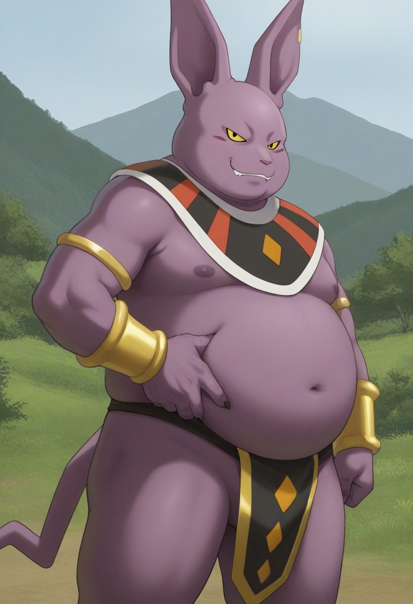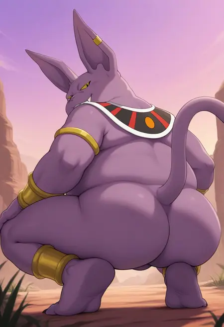 Anthro,tail,champa,chubby male,egyptian clothes,yellow scera,black pupil,purple skin,animal ears,jewelry