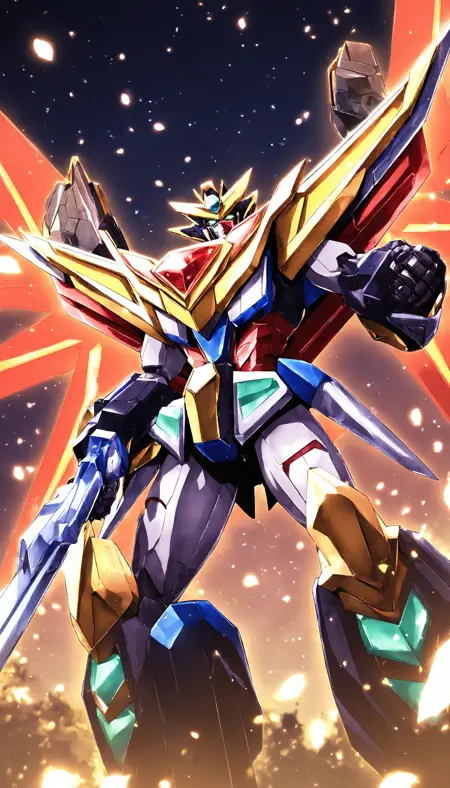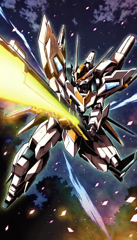 (LRS:1.5), (mecha flying in the sky:2), (flying:2),best quality, masterpiece, ultra-detailed, mecha robot, (ultra-detailed mecha armor), full armor, (very large size mecha:1.5), glowing eyes, (full body:1.2), (mechanical parts:1), (robot joints:1), (military parts:1.1), (heroic parts:1.1), cable, (dynamic pose:2),(Detailed eye description:1.2),(huge mechanical weapon:1.2), (detailed weapon description:1.2), (holding weapon and weapon :1.5)<lora:srdxl_v2g:0.8>