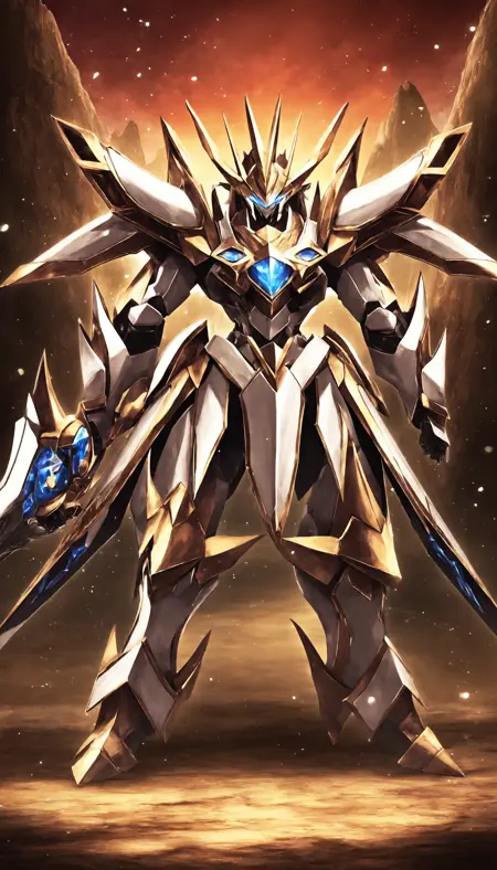 (RRS:1),(MECHA-WINGS:2),best quality, masterpiece, ultra-detailed, mecha robot,(dynamic pose:2),(ultra-detailed mecha armor), full armor, (very large size mecha:1.5), glowing eyes, (full body:1.2), (mechanical parts:1), (robot joints:1), (military parts:1), (heroic parts:1),(Detailed eye description:1.2),(huge mechanical weapon:1.2), (detailed weapon description:1.2), (holding weapon and weapon :1.5) <lora:srdxl_v2g:0.8>