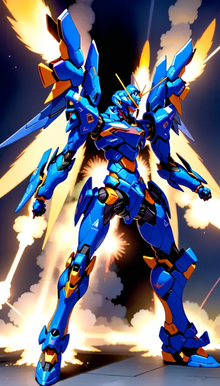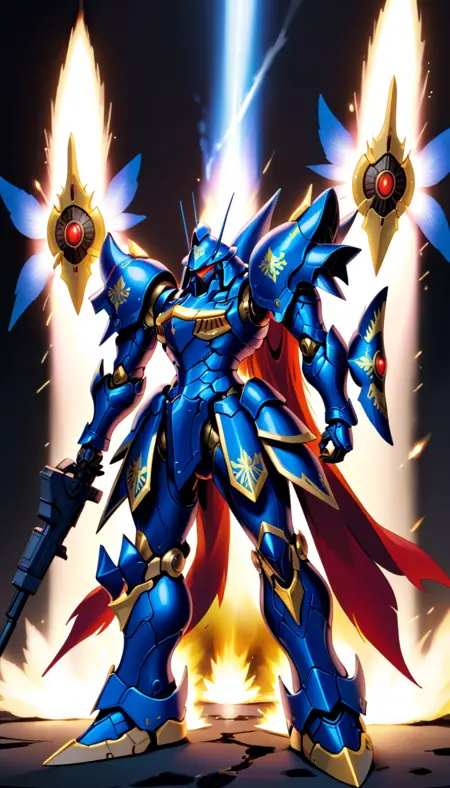 (RRS:1),(MECHA-WINGS:2),best quality, masterpiece, ultra-detailed, mecha robot,(dynamic pose:2),(ultra-detailed mecha armor), full armor, (very large size mecha:1.5), glowing eyes, (full body:1.2), (mechanical parts:1), (robot joints:1), (military parts:1), (heroic parts:1),(Detailed eye description:1.2),(huge mechanical weapon:1.2), (detailed weapon description:1.2), (holding weapon and weapon :1.5) <lora:srdxl_v2g:0.8>