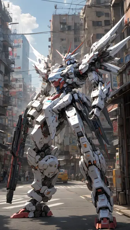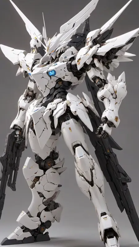 (RRS:1),(MECHA-WINGS:2),best quality, masterpiece, ultra-detailed, mecha robot,(dynamic pose:2),(ultra-detailed mecha armor), full armor, (very large size mecha:1.5), glowing eyes, (full body:1.2), (mechanical parts:1), (robot joints:1), (military parts:1), (heroic parts:1),(Detailed eye description:1.2),(huge mechanical weapon:1.2), (detailed weapon description:1.2), (holding weapon and weapon :1.5) <lora:srdxl_v2g:0.8>