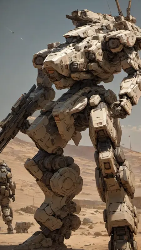 It is possible to generate robots with a heavy, massive body structure. Prompts for additional weapons would make it even more powerful.