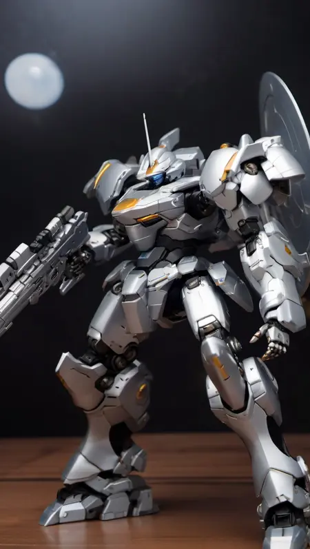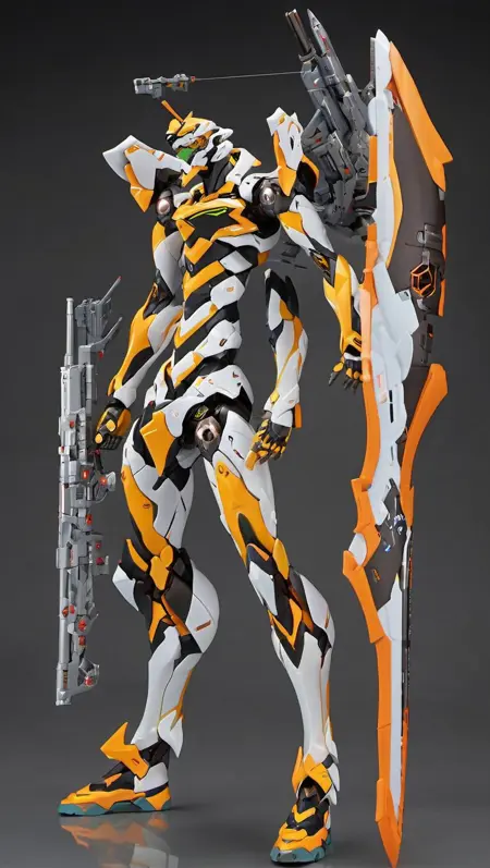 (ROBOTARTSTYLE:1.2),(realistic:1.5),(RRS:1.5),best quality, ultra-detailed,(mecha robot:1),(ultra-detailed mecha armor), glowing eyes, (full body:1.2), (mechanical parts:1), (robot joints:1), (military parts:1), (breastarmor:2), (heroic parts:1.5),(huge mechanical weapon:1.2), (detailed weapon description:1.2), (holding weapon:1.5) <lora:srdxl_v2g:0.8>