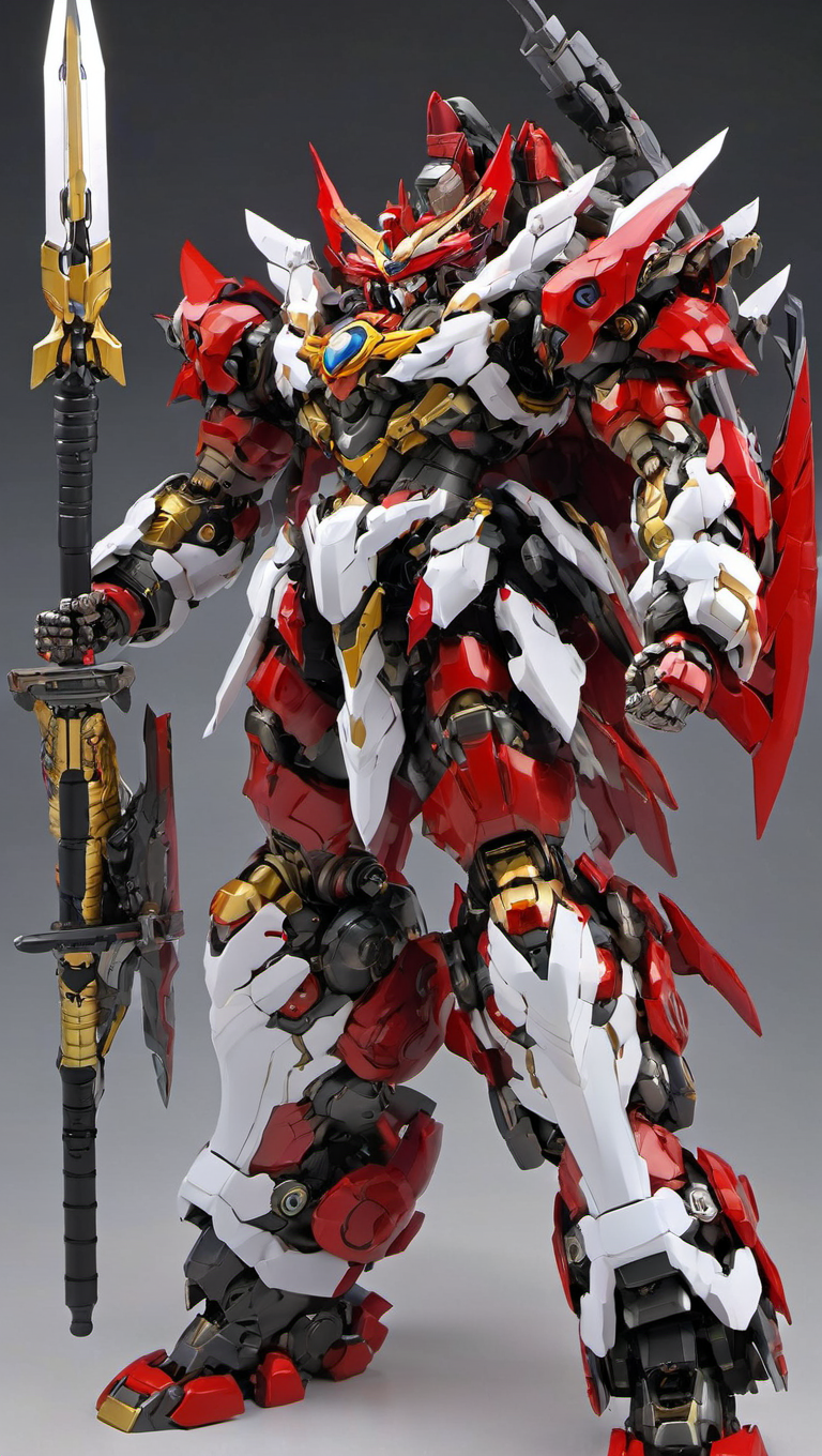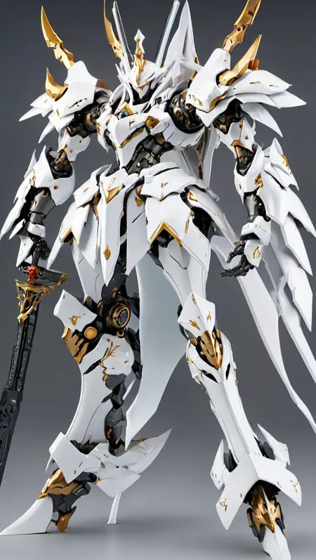 (RRS:1),(MECHA-WINGS:2),best quality, masterpiece, ultra-detailed, mecha robot,(dynamic pose:2),(ultra-detailed mecha armor), full armor, (very large size mecha:1.5), glowing eyes, (full body:1.2), (mechanical parts:1), (robot joints:1), (military parts:1), (heroic parts:1),(Detailed eye description:1.2),(huge mechanical weapon:1.2), (detailed weapon description:1.2), (holding weapon and weapon :1.5) <lora:srdxl_v2g:0.8>