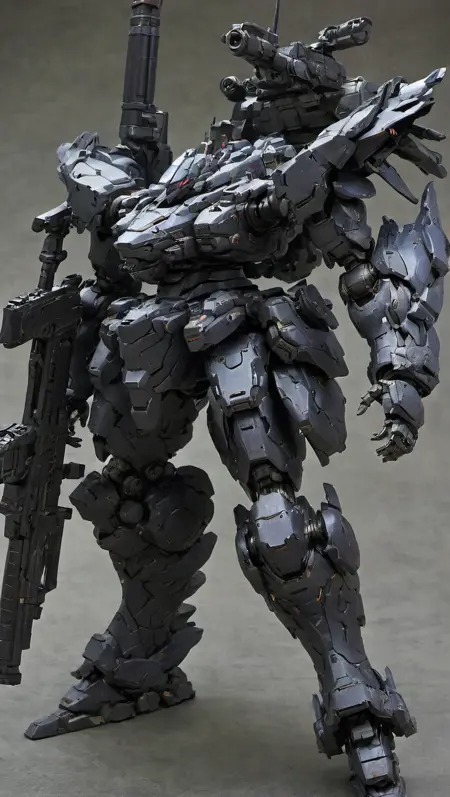 (ROBOTARTSTYLE:1.2),(realistic:1.5),(RRS:1.5),best quality, ultra-detailed,(mecha robot:1),(ultra-detailed mecha armor), glowing eyes, (full body:1.2), (mechanical parts:1), (robot joints:1), (military parts:1), (breastarmor:2), (heroic parts:1.5),(huge mechanical weapon:1.2), (detailed weapon description:1.2), (holding weapon:1.5) <lora:srdxl_v2g:0.8>