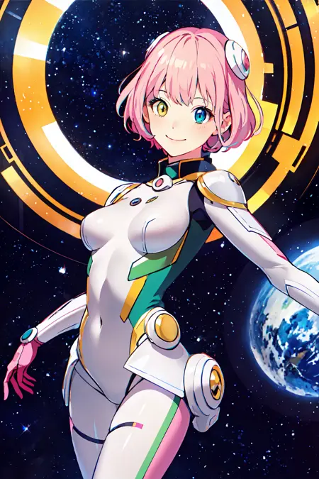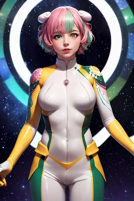 スペーススーツ: 白いボディスーツ, ピンクの手袋