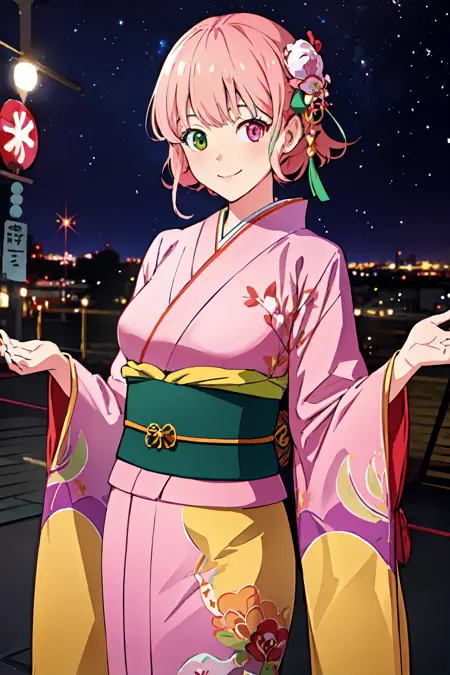 このキャラクターは異色瞳で、片方の目が黄色、もう片方の目が緑色です。さまざまなベースモデルで一貫して描画するため、カットオフ拡張機能を使用すると効果的であることが判明しました。安定した結果を得るための代替手段として、黄色の目、緑の目、異色瞳に関連するプロンプトの重みを増やすこともできます。これにより、キャラクターの独自の目の色をより正確でバランスの取れた形で表現できます。