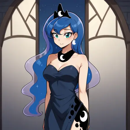 如果你想要移除额外的部分,请将以下词语添加到负面提示中:“黑色新月王冠,王冠,翅膀,角,蓝色皮肤,彩色皮肤”。