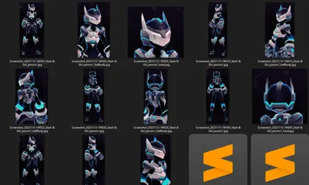 Slash & Girl은 약 3시간 플레이한 후 그만둔 모바일 게임입니다. 저는 이 게임을 추천하지 않지만, 게임 안에 정말 멋진 스킨인 CodeV가 있어서 그걸로 LoRA를 만들었습니다!