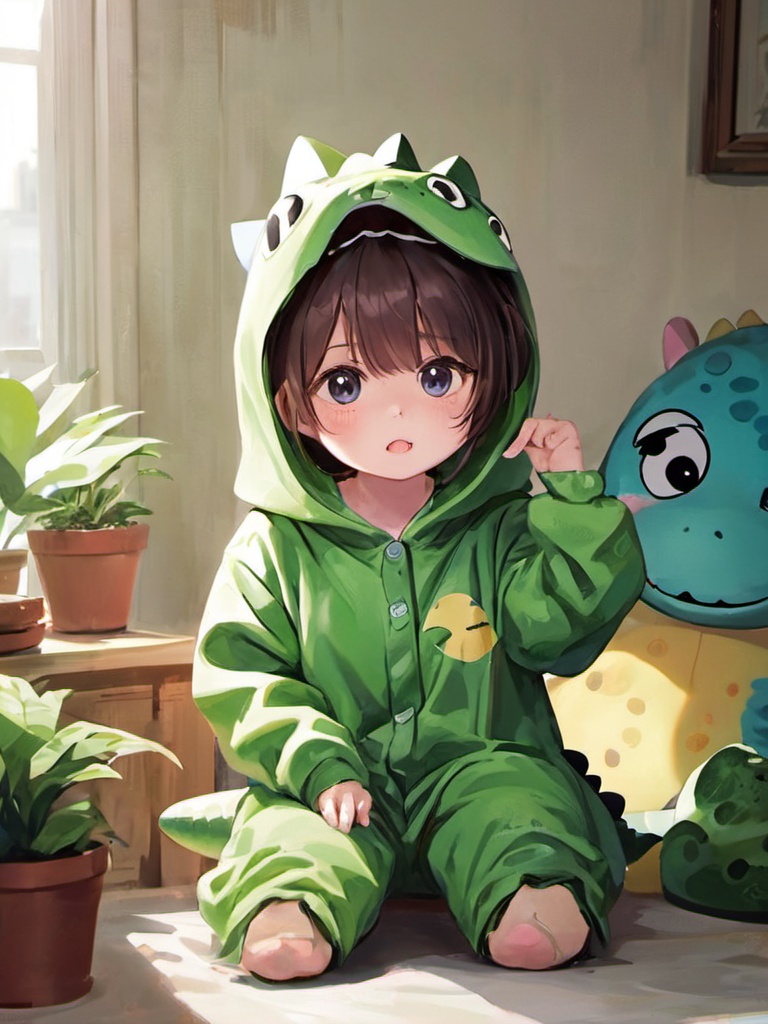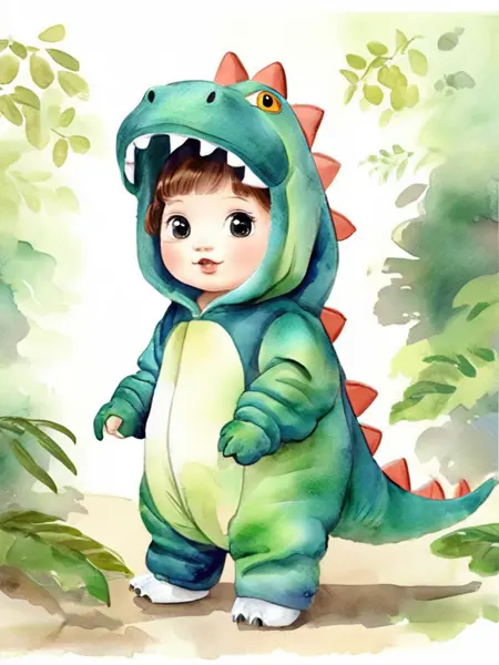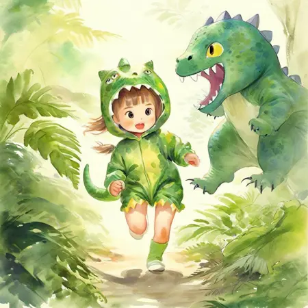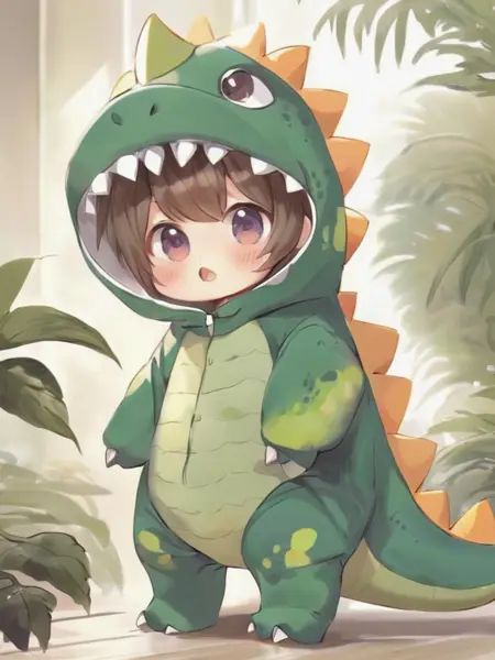 恐竜の衣装を着た子供
