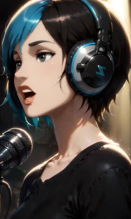 多色头发,黑发,蓝发,嘴唇,黑眼,短发,首饰,耳环