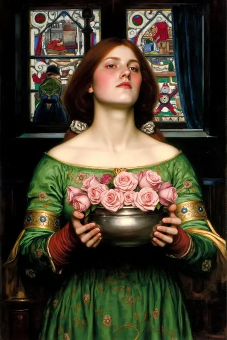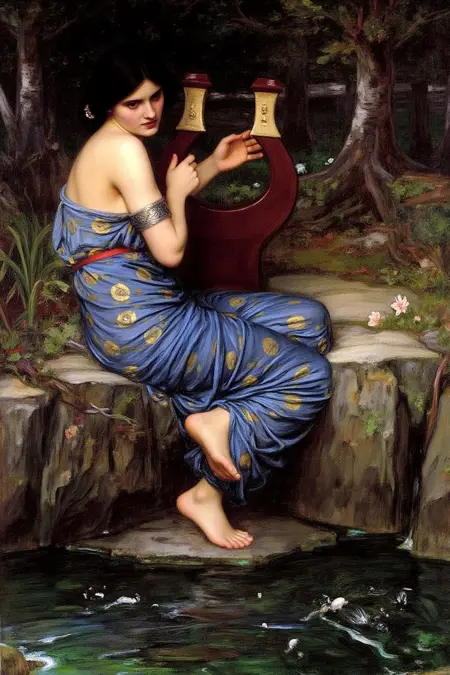Trained on seventeen paintings by the Pre-Raphaelite Brotherhood follower John William Waterhouse (baptised 6 April 1849 – 10 February 1917). To see his works, please go to