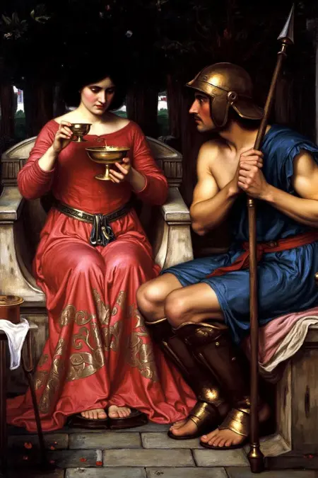 4. Circe Offering the Cup to Ulysses (1891) – A dramatic scene from Homer’s Odyssey, where the sorceress Circe tempts Ulysses.