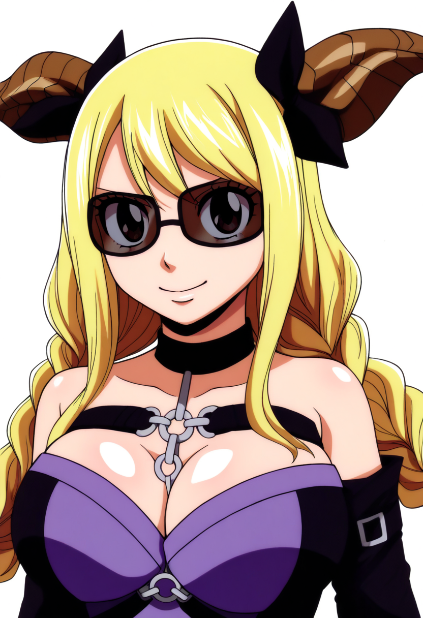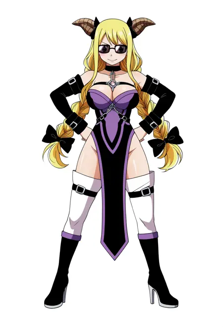 基本プロンプト:1girl, lucy heartfilia, blonde hair, twin braids, long hair, hair bow