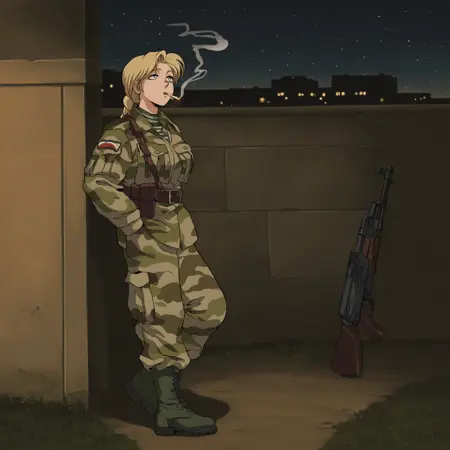 A blend of similar art styles, from both recent and classic art, meant to evoke the late 90s. Can be used for both NSFW or non-NSFW generation, but (as with virtually all anime models) your best results will be character-focused images, especially in the pin-up style. Also features environmental art in its training set to help match the old painted scenery style, as well as multiple images of characters holding guns. The training set is large, but designed not to clash with itself (i.e. different character design styles).