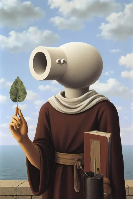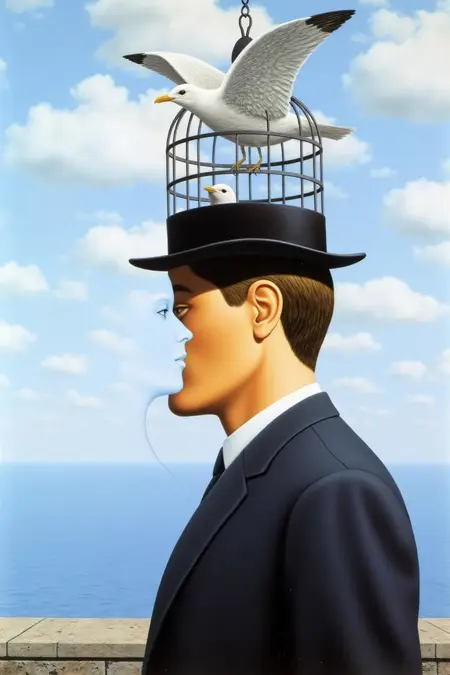 你可以在图库中看到我用于训练的24幅图像,并以此作为起点,创作你自己的马格利特风格仿作。但希望你比我更有想象力,能想出更狂野的点子。请尽情享受创作的乐趣吧!🎈👍