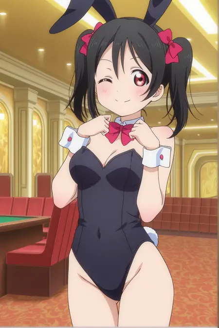 基础款:nico-ya、1girl、黑发、红眼、双马尾