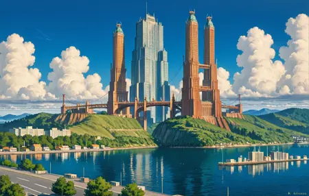 A weight of 0.85 to 1 works well with this with most models. A weight on the small scale will allow for modern realistic buildings and settings while the higher setting makes pictures adhere more to the style with less realism. Sampling Steps of 15 to 35 works well with most models, as does a CFG Scale of 3 to 7 with most working at around 5.