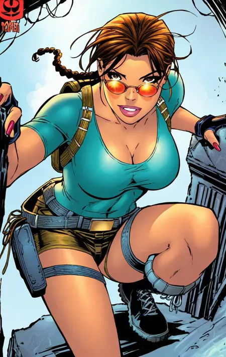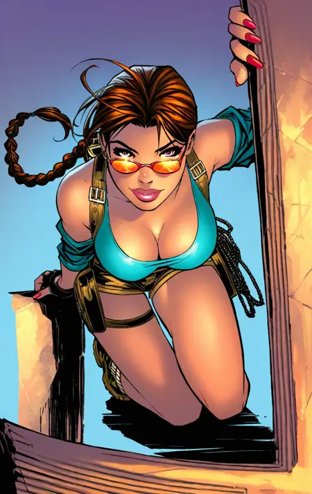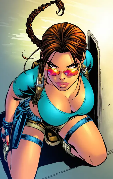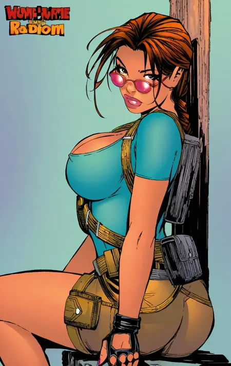 l4r4c0, 1girl, solo, long hair, breasts, large breasts, brown hair, gloves