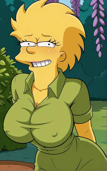 PONYXL_STYLE_NewCROCSimpsons_ownwaifu, 1girl, yellow skin, large breasts, colored skin, jewelry {nude, nipples, navel | swimsuit | lingerie | shirt | dress},
