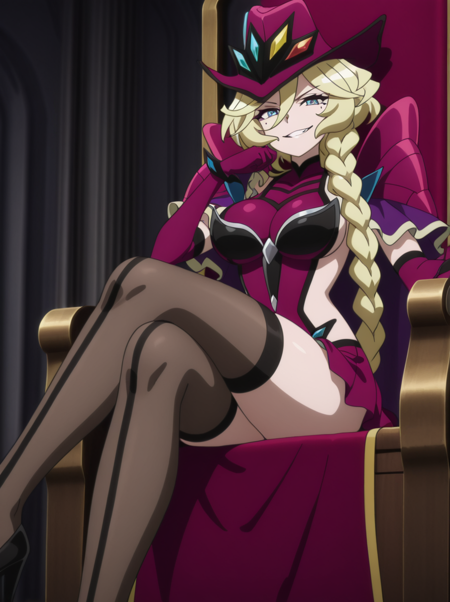 일반 외모 프롬프트: 금발 머리, 1소녀, 혼자, 점, 눈 밑 점, 파란 눈, 땋은 머리, 땋은 꼬리 장갑, 긴 머리