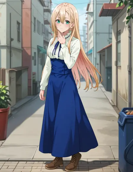 <lora:primula_mallow-around_40_otoko_no_isekai_tsuuhan-pxl-anime-soralz:1>, primula mallow (around 40 otoko no isekai tsuuhan), long hair, blonde hair, gradient hair, hair between eyes, green eyes, (blue eyes:0.4)