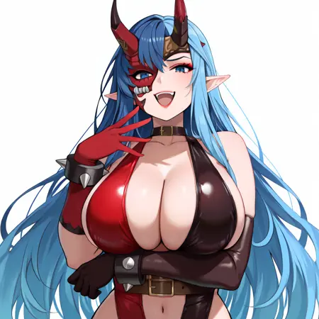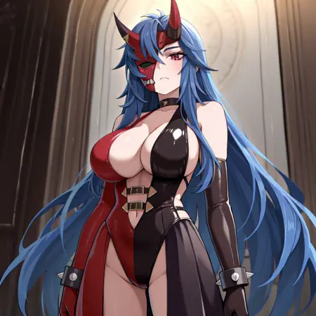 태그: Z34L, 맞지 않는 뿔, 다색 스링샷 수영복, 빨간 수영복, 검은 수영복, 반 마스크, 여러 개의 버클, 팔꿈치 장갑, 날카로운 팔찌, 맞지 않는 장갑, 빨간 장갑, 검은 장갑, 팔꿈치 장갑